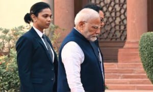 સંસદની બહાર વડાપ્રધાન નરેન્દ્ર મોદીની પાછળ ઉભેલી મહિલા અધિકારીની તસવીર...