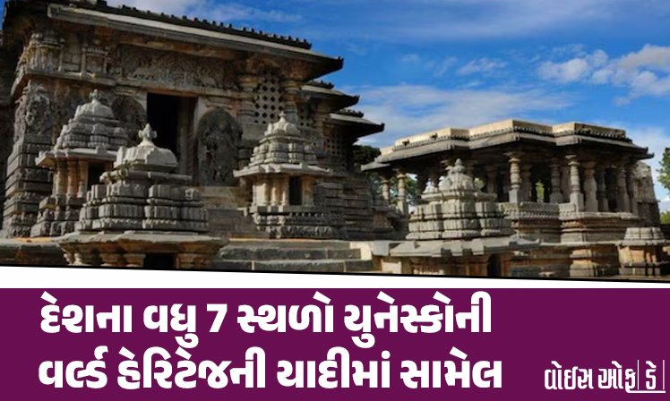દેશના વધુ સાત ઐતિહાસિક સ્થળને યુનેસ્કોની સંભવિત વર્લ્ડ હેરિટેજની યાદીમાં સામેલ કરવામાં આવ્યા છે. યુનેસ્કોમાં ભારતના સ્થાયી પ્રતિનિધિમંડળે આ અંગે માહિતી આપી હતી. આ યાદીમાં સાત રાજ્યોના સાત સ્થળ સામેલ છે. જે દેશના સમૃદ્ધ સાંસ્કૃતિક વારસાનો મહત્ત્વનો ભાગ છે.