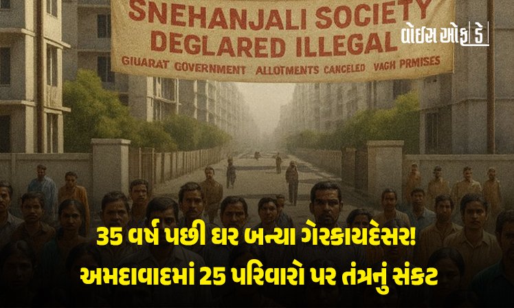 અમદાવાદના ઘાટલોડિયા વિસ્તારમાં 35 વર્ષથી વસવાટ કરતી સ્નેહાંજલિ કો-ઓપ સોસાયટી અચાનક ગેરકાયદેસર જાહેર થતા 25 પરિવારો માટે જીવનભરની કમાણી દાવ પર લાગી ગઈ છે.