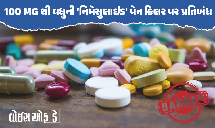 ભારતમાં દુખાવો અને તાવ જેવી સામાન્ય ફરિયાદોની સારવાર માટે વપરાતી લોકપ્રિય પેનકીલર નિમસુલાઇડ અંગે એક મોટો નિર્ણય લેવામાં આવ્યો છે. કેન્દ્રીય આરોગ્ય મંત્રાલયે 100 મિલિગ્રામથી વધુ ડોઝ ધરાવતી નિમસુલાઇડ ઓરલ દવાઓના ઉત્પાદન અને વેચાણ પર સંપૂર્ણ પ્રતિબંધ મૂકવાની જાહેરાત કરી છે. આ નિર્ણય જાહેર હિતમાં અને આરોગ્યની ચિંતાઓને ધ્યાનમાં રાખીને લેવામાં આવ્યો છે, જેથી લોકોને તેનાથી થતી સ્વાસ્થ્ય આડઅસરોથી બચાવી શકાય. ચાલો તેના વિશે વધુ જાણીએ…