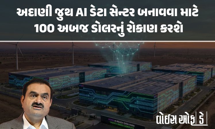 અદાણી ગ્રુપે એઆઈ સમિટ વચ્ચે એક મોટી જાહેરાત કરી હતી કે કે તેઓ 2035 સુધીમાં નવીનીકરણીય ઉર્જા દ્વારા સંચાલિત મોટા AI-સંચાલિત ડેટા સેન્ટરો બનાવવા માટે 100 અબજ ડોલર (આશરે 8.3 લાખ કરોડ રૂપિયા)નું રોકાણ કરશે. તેને વિશ્વના સૌથી મોટા સંકલિત ઉર્જા અને કમ્પ્યુટર પ્રોજેક્ટ્સમાંનું એક માનવામાં આવે છે.