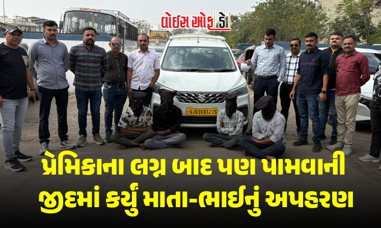 પ્રેમમાં ભાન ભૂલેલા પ્રેમીએ અમદાવાદ પરણેલી પ્રેમિકાનું સરનામું જાણવા ધોળા દિવસે રાજકોટના સાધુ વાસવાણી રોડ જનકપુરી ક્વાર્ટર નજીકથી યુવતીના માતા અને 14 વર્ષીય ભાઈનું કારમાં અપહરણ કર્યું હતું. જે બાદ યુનિવર્સિટી પોલીસ મથકના સ્ટાફે મોબાઈલ લોકેશન, સીસીટીવીની મદદથી આરોપીઓની કારનો પીછો કરી ગણતરીની કલાકોમાં જ ભાવનગર-રાજકોટ હાઇવે પર આવેલા ત્રંબા ગામ પાસેથી કારમાં સવારે ચાર આરોપીઓને દબોચી મા-દીકરાને સુરક્ષિત છોડાવ્યા હતા.