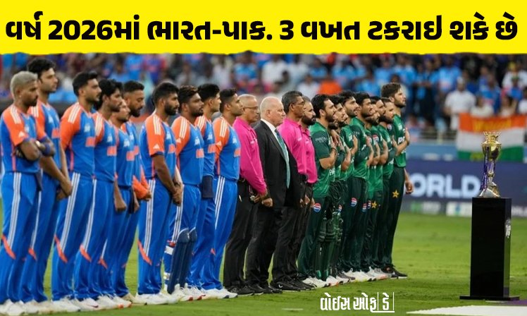 ભારત-પાકિસ્તાન વચ્ચે ક્રિકેટના મેદાન ઉપર ગમે તે મુકાબલો હોય તે આપોઆપ હાઈવોલ્ટેજ બની જાય છે. તાજેતરમાં જ અન્ડર-19 એશિયા કપ અને તેના પહેલાં સીનિયર મેન્સ એશિયા કપમાં બન્ને ટીમ વચ્ચે રમાયેલો મુકાબલો ચર્ચાસ્પદ રહ્યો હતો. હવે 2026માં પણ ભારત-પાકિસ્તાન વચ્ચે ત્રણ વખત ટક્કર થઈ શકે છે.