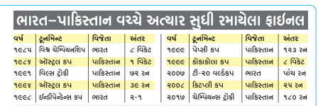 બન્ને વચ્ચે 2017માં છેલ્લે ફાઈનલ મેચ રમાઈ હતી. ચેમ્પિયન્સ ટ્રોફીના ફાઈનલમાં પાકિસ્તાને ભારતને 180 રને હરાવ્યું હતું. વર્લ્ડકપમાં બન્ને ટીમ એક વખત ફાઈનલમાં ટકરાઈ ચૂકી છે. વર્ષ 2007માં રમાયેલા ટી-20 વર્લ્ડકપના ફાઈનલમાં ભારતે પાકિસ્તાન સામે પાંચ રને જીત મેળવી હતી. એશિયા કપના ફાઈનલમાં ભારતીય ટીમ પહેલી વખત પાકિસ્તાન સામે રમશે. 41 વર્ષમાં આવું પ્રથમવાર બનવા પામશે.