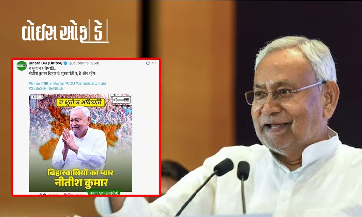 JDU ના X હેન્ડલ પર નીતિશ કુમારનો એક ફોટો શેર કરવામાં આવ્યો હતો જેમાં કેપ્શન હતું, “ના ભૂતો ના ભવિષ્યતિ… નીતિશ કુમાર બિહારના મુખ્યમંત્રી હતા, છે અને રહેશે.” અગાઉ, એક સમર્થકે પટણામાં પાર્ટીના મુખ્યાલયની સામે એક પોસ્ટર લગાવ્યું હતું, જેમાં નીતિશ કુમાર વિશે લખ્યું હતું, “ટાઈગર હજુ પણ જીવિત છે.”