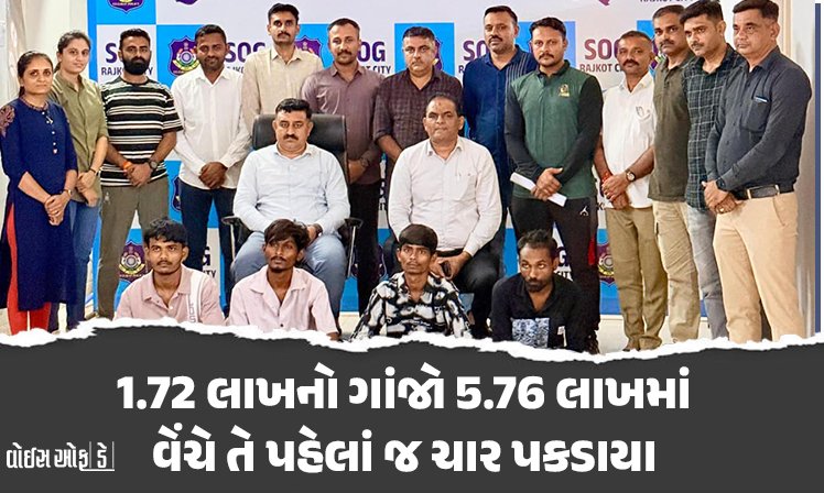 1.72 લાખનો ગાંજો 5.76 લાખમાં વેંચે તે પહેલાં જ રાજકોટ SOGએ ચાર શખ્સોને પકડી પાડયા