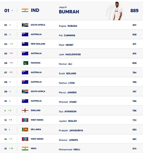 બુમરાહ ટોચ પર યથાવત