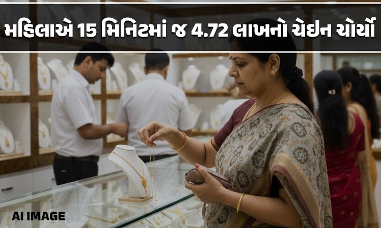 રાજકોટમાં તસ્કરો બેલગામ: ગોલ્ડ શો-રૂમમાંથી મહિલાએ 15 મિનિટમાં જ 4.72 લાખનો ચેઇન ચોર્યો,બીજી ઘટનામાં 40 વર્ષીય મહિલાએ મિનિટોમાં ચેઇન સેરવ્યો