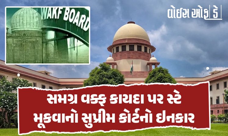 સમગ્ર વક્ફ કાયદા પર સ્ટે મૂકવાનો સુપ્રીમ કોર્ટનો ઇનકાર : 3થી વધુ બિન મુસ્લિમ સભ્યો નહીં હોય, 5 વર્ષની જોગવાઈ રદ