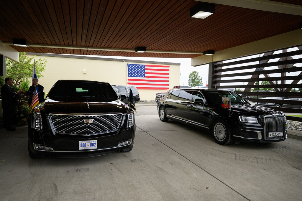 image-wikipedia Next to the 2018 „Cadillac“ of the President of the United States, during the Russian President’s visit to Alaska on August 15, 2025.