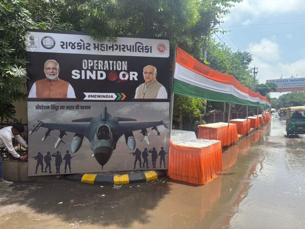 રાજકોટ મહાપાલિકાએ અત્યંત શરમજનક કહી શકાય તેવી હરકત તિરંગા યાત્રામાં કરી હતી. તાજેતરમાં જ ભારતીય સેના દ્વારા ‘ઓપરેશન સિંદૂર’ પાર પાડીને પાકિસ્તાનના દાંત ખાટા કરી નાખવામાં આવ્યા હતા. આ ઓપરેશન દરમિયાન રાફેલ સહિતના લડાકું વિમાનનો ઉપયોગ કરાયો હોવાનું સૌ કોઈ જાણે છે આમ છતા મહાપાલિકાના અક્કલમઠ્ઠા સ્ટાફ દ્વારા પાકિસ્તાનના ફાઈટર પ્લેનની મસમોટી તસવીર લગાવી દેતા ભારે વિવાદ પણ થયો હતો.