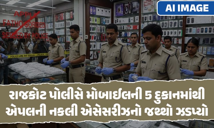 APPLE લવર્સ ચેતજો! રાજકોટના સરદારનગર રોડ પર પોલીસે મોબાઈલની 5 દુકાનમાંથી એપલની નકલી એસેસરીઝનો જથ્થો ઝડપ્યો