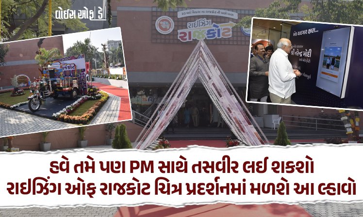 આ વેળાએ મુખ્યમંત્રીએ “રાઈઝિંગ રાજકોટ”ની થીમ હેઠળ રાજકોટ શહેરના 20 વર્ષના વિકાસની તસવીરી ઝલક ડૉ. શ્યામા પ્રસાદ આર્ટ ગેલેરી ખાતે જોવા મળશે ત્યારે રાઇઝિંગ ઓફ રાજકોટ ચિત્ર પ્રદર્શનમાં હવે તમે પણ PM સાથે તસવીર લઈ શકશો. સ્ક્રીન સામે ઉભા રહેતા જ એક ક્લિકમાં વડાપ્રધાન સાથેની તસ્વીર મળશે. ત્યારે મુખ્યમંત્રીએ આ લ્હાવો લીધો હતો.