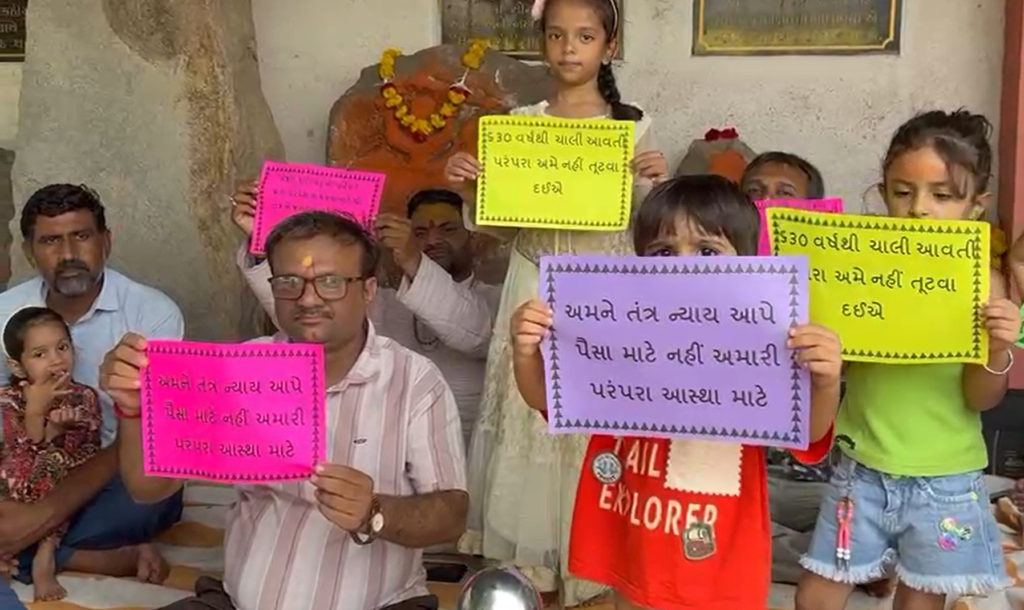જસદણના ઘેલા સોમનાથ મંદિરમાં મહાપુજા મામલે વિવાદ : ભટ્ટ પરિવારે બાળકો સહિતના સભ્યો દ્વારા અનસન શરૂ