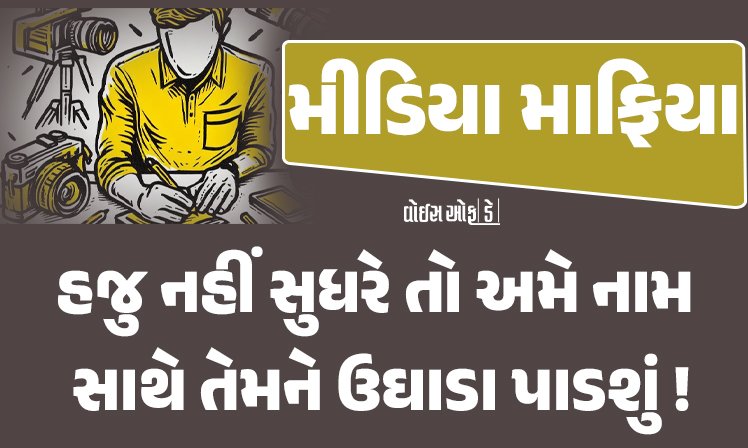 મીડિયાના એક નાનકડા, પણ પેધી ગયેલા અને પોતાને મગરમચ્છ સમજતા માફિયાઓને કારણે આખું મીડિયા જગત બદનામ થઈ રહ્યું છે. સૂકા ભેગું લીલું બળી રહ્યું છે ત્યારે સંનિષ્ઠ પ્રસાર માધ્યમોની ફરજ છે કે એવા તત્વોને ખુલ્લા પાડે અને જનતાને આ ખંડણીખોરી થી બચાવે. `વોઇસ ઓફ ડે’એ એ માટે પહેલ કરી છે. `વોઇસ ઓફ ડે’ને અનેક પુરાવાઓ, દસ્તાવેજો લોકોએ સામેથી આપ્યા છે તેની તપાસ ચાલુ છે. જો કે, મીડિયાના આ દૂષણ સામે લોકોએ, વેપારીઓએ,અન્ય ક્ષેત્રના વ્યવસાયકારોએ પોતે જ િંહમત કરી ને સામે આવવું પડશે. અત્યાર સુધી એમની દાદાગીરીને કોઈએ પડકારી નથી એટલે આ દૂષણને પ્રોત્સાહન મળ્યું છે.પણ એક વખત સામે ઊભા થશો તો તેમના વળતા પાણીની નિશ્ચિત છે કારણ કે સત્ય તેમની પક્ષે નથી. `વોઇસ ઓફ ડે` મીડિયા શુધ્ધિકરણના આ પવિત્ર કાર્યમાં, સત્યની એ લડાઈમાં તમારી સાથે જ છે, તમને બધી મદદ કરવા માટે તૈયાર છે. પીડિતો માટે `વોઇસ ઓફ ડે’ના દ્વાર ખુલ્લા જ છે, સદા ખુલ્લા રહેશે.