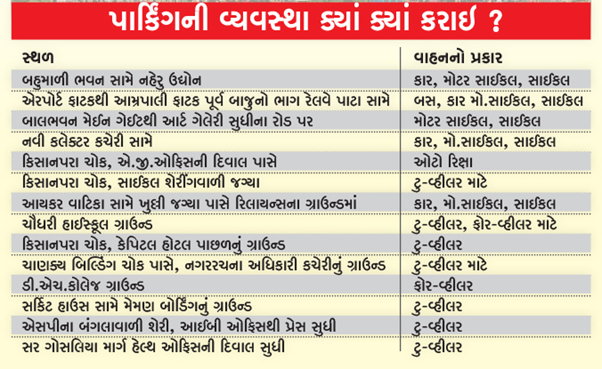 પાર્કિંગની વ્યવસ્થા ક્યાં ક્યાં કરાઇ ?