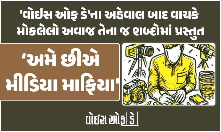 પ્રસાર માધ્યમોમાં ફૂલેલા ફાલેલા, સમાજને પીડતા દૂષણો અંગે `વોઇસ ઓફ ડે’ના રવિવારના અંકમાં પ્રસિદ્ધ થયેલા અહેવાલના પ્રતિભાવમાં એક વાચકે, `અમે છીએ મીડિયા માફિયા’ મથાળા સાથે મોકલેલું લખાણ અહીં પ્રસિદ્ધ કર્યું છે. અલબત, તેમાં લખાયેલી વિગતોની `વોઇસ ઓફ ડે’ પુષ્ટિ નથી કરતું.પણ સાથે જ એ વાચકે વર્ણવેલી પીડા, વ્યથા અને તેમના આક્રોશમાં, વર્તમાન સમયમાં મુઠ્ઠીભર મીડિયાને કારણે સત્યનિષ્ઠ અને પત્રકારત્વના મૂલ્યોનું જતન કરતાં મોટાભાગના પ્રસાર માધ્યમો માટે પણ આમ જનતા કેવું વિચારવા લાગી છે તેનું ખૂબ આઘાતજનક ઉદાહરણ મળ્યું છે.મીડિયાની વિશ્વનીયતા કઇ હદે ખતમ થઈ રહી છે એની ઝલક આ લખાણમાંથી મળી છે.મીડિયા જગત માટે આ સ્થિતિ ખતરાની ઘંટી સમાન છે.મીડિયા જગતે આત્મિંચતન કરવાનો સમય પાકી ગયો છે.