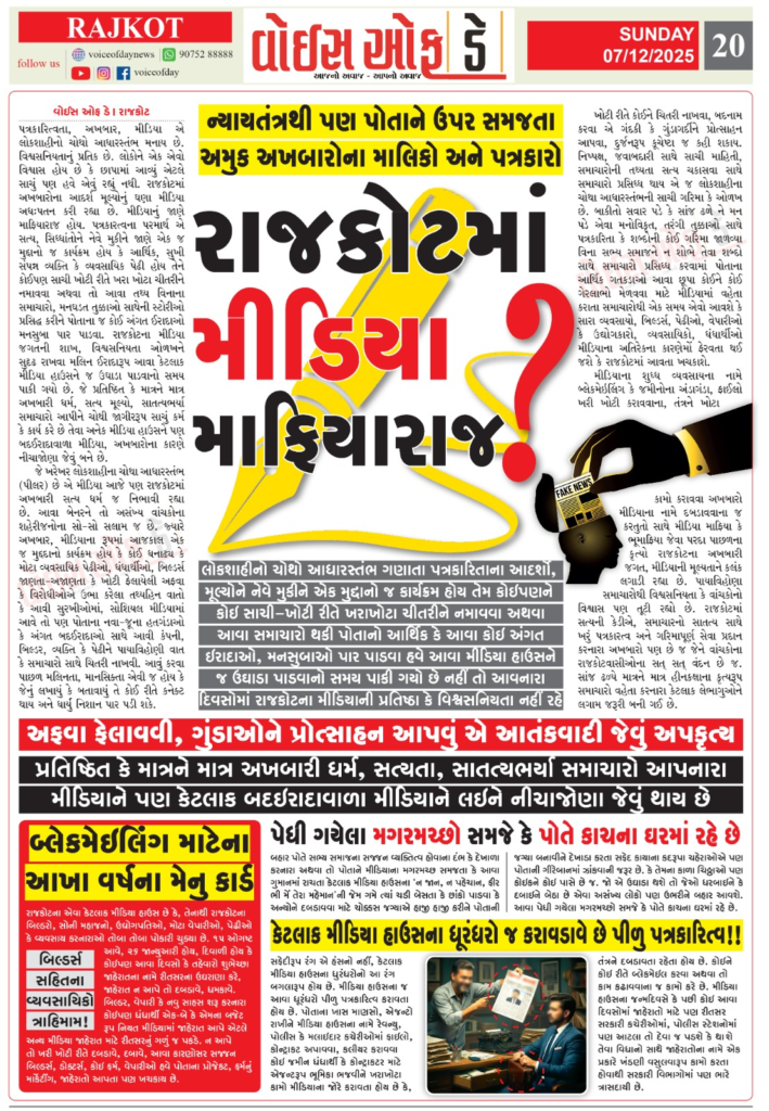 રાજકોટમાં મીડિયા માફિયારાજ? ‘વોઇસ ઓફ ડે’ના અહેવાલ બાદ વાચકે મોકલેલો અવાજ તેના જ શબ્દોમાં પ્રસ્તુત
