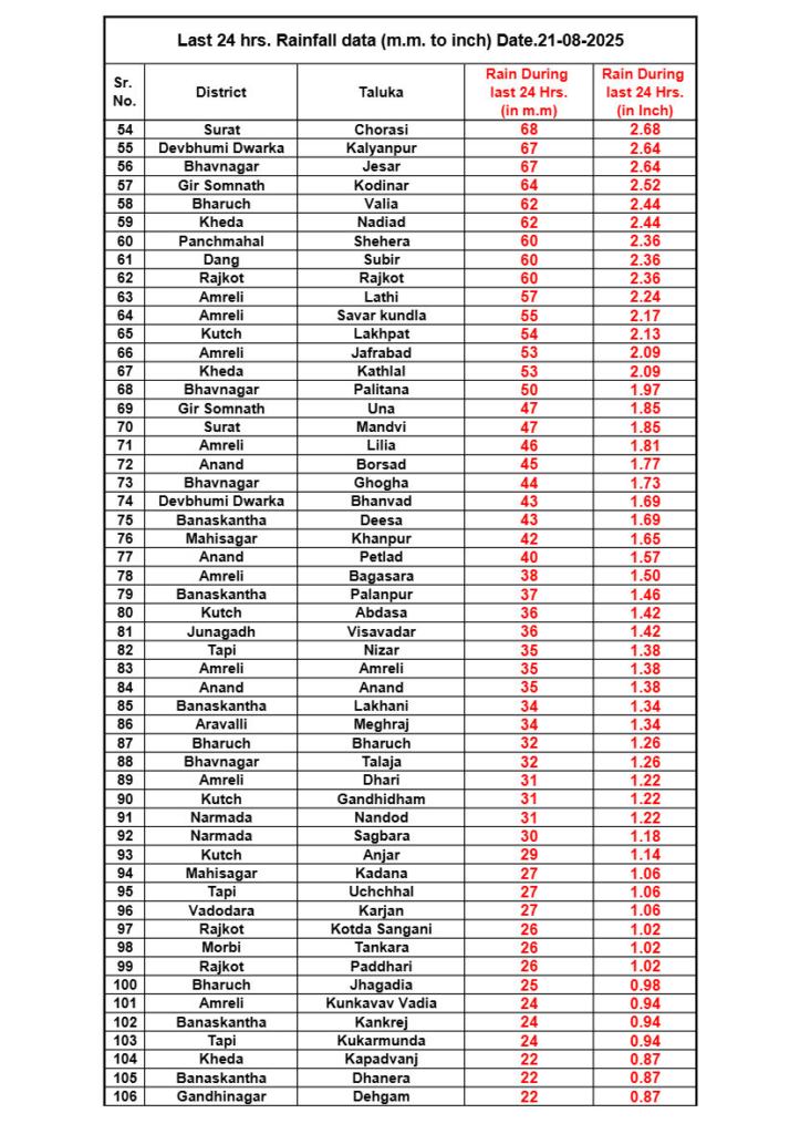 મેઘો મુશળધાર : છેલ્લા 24 કલાકમાં 226 તાલુકામાં વરસાદ, આજે રાજ્યના 3 જિલ્લામાં રેડ એલર્ટ, અતિભારે વરસાદની આગાહી