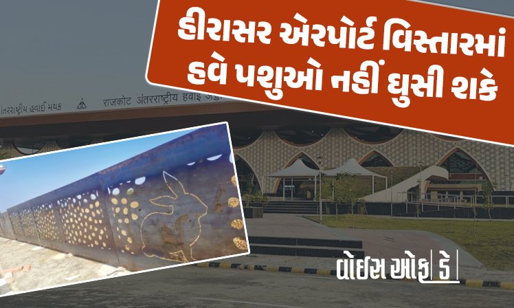 રાજકોટના હીરાસર એરપોર્ટ વિસ્તારમાં હવે પશુઓ નહીં ઘુસી શકે: ફેન્સિંગ લગાવાઈ, વડાપ્રધાન મોદીનાં આગમન પૂર્વે ખાસ ડિઝાઇન સાથે બેરીકેડ લાગ્યાં