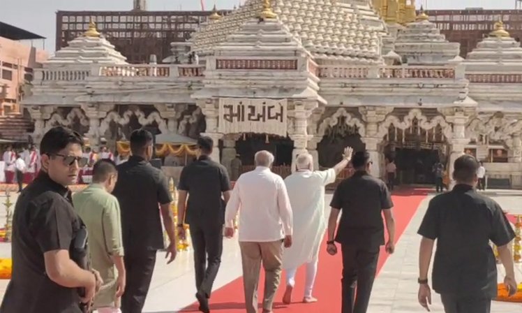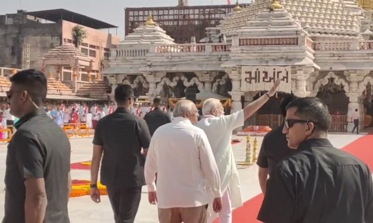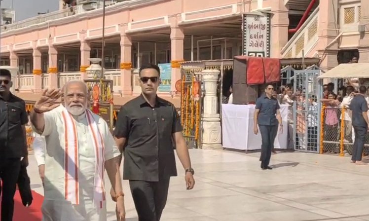 પીએમ મોદી પહોંચ્યા અંબાજી: માતાજીની પૂજા કરીને સૌથી મોટા શ્રીયંત્રનું લોકાર્પણ કર્યું