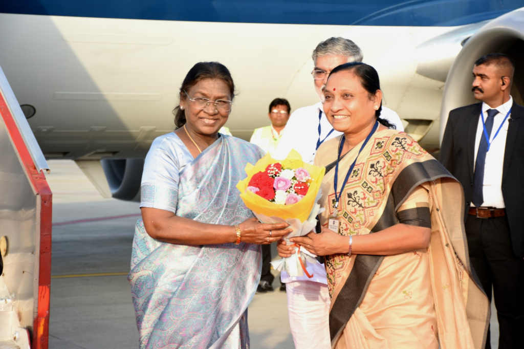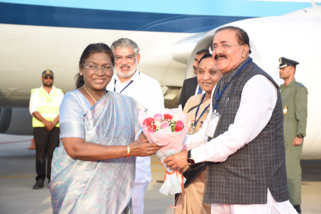 રાષ્ટ્રપતિ દ્રૌપદી મુર્મુ ગુરુવારે સાંજે એરફોર્સના ખાસ વિમાન મારફતે રાજકોટ હિરાસર એરપોર્ટ પર આવી પહોંચ્યા હતા. હિરાસર એરપોર્ટ ખાતે આગમન બાદ રાષ્ટ્રપતિ દ્રૌપદી મુર્મુનું મહાનુભાવો દ્વારા ઉષ્માભર્યું સ્વાગત કરવામાં આવ્યું હતું. બાદ જડબેસલાક સુરક્ષા વ્યવસ્થા વચ્ચે રાજકોટના સરકીટ હાઉસ ખાતે પહોંચ્યા હતા. અહીં તેઓ કાઠિયાવાડી ભોજનનો આનંદ માણી રાત્રી રોકાણ કર્યું હતું અને સવારે 10 વાગ્યા બાદ હિરાસર એરપોર્ટ ખાતેથી હેલીકૉપટર મારફતે સોમનાથ જવા રવાના થયા હતા.