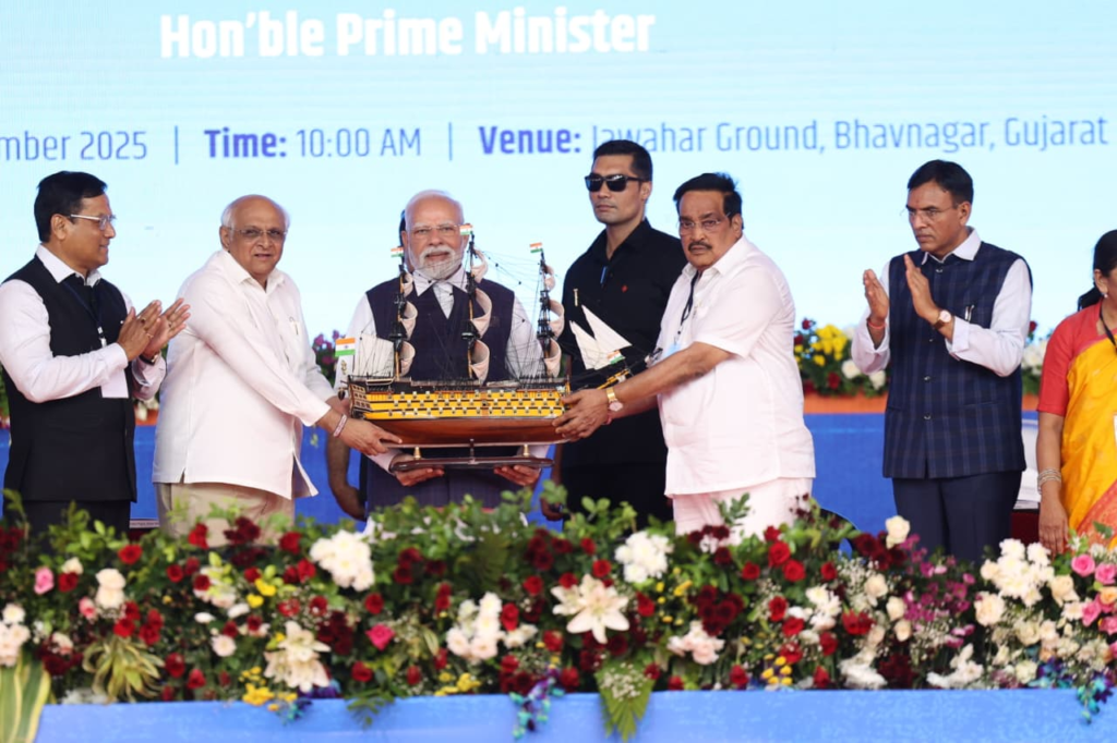 પ્રધાનમંત્રી નરેન્દ્ર મોદી આજે ગુજરાતની મુલાકાતે છે. ભાવનગર એરપોર્ટ પર આગમન બાદ તેમણે રોડશો કર્યો હતો જેમાં મોદી-મોદીના નારા લાગ્યા હતા. રોડ શો દરમિયાન મોટી સંખ્યામાં સમર્થકો ઉમટ્યા હતા. ત્યારબાદ જવાહર મેદાન પહોંચ્યા હતાં અને જંગી જાહેરસભામાં લોકોનું અભિવાદન જીલયુ હતું. ધારાસભ્યો અને મંત્રીઓએ માતાજીની ચુંદડી અને ચાંદીના ગરબાથી સ્વાગત કર્યું હતું. વડાપ્રધાન નરેન્દ્ર મોદીએ આજે ‘સમુદ્ર સે સમૃદ્ધિ’ કાર્યક્રમ અંતર્ગત ભાવનગર ખાતેથી દેશના મેરીટાઇમ સેક્ટરને વેગ આપતા તેમજ ગુજરાતમાં હરિત ઊર્જાના રૂ. 33,600 કરોડથી વધુના પ્રોજેક્ટ્સનું લોકાર્પણ-ખાતમુહૂર્ત કર્યું હતું.