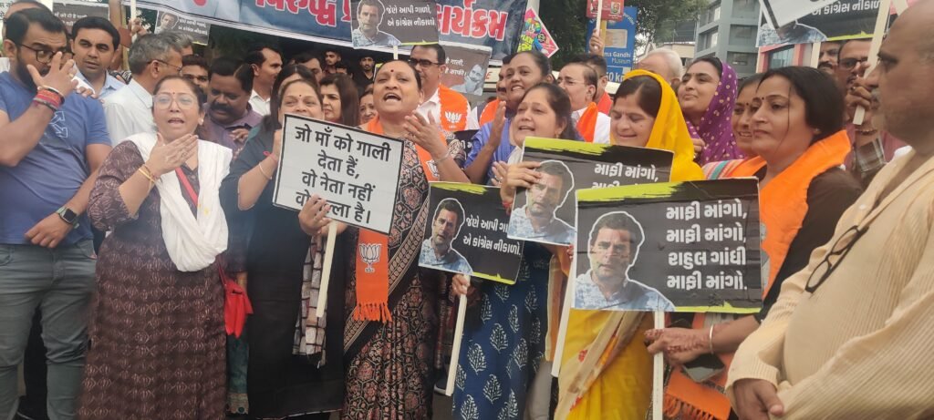 રાજકોટના રામનાથપરામાં ગરુડ ગરબી ચોકમાં ભાજપના યુવા કાર્યકર્તાઓ દ્વારા રાહુલ ગાંધીનું પૂતળાને માર મારવામાં આવ્યો હતો અને પૂતળું સળગાવવામાં પણ આવ્યું હતું. રાહુલ ગાંધી સ્ટેજ પરથી ભાષણ આપી રહ્યા હતા. આ દરમિયાન કેટલાક લોકોએ પીએમ મોદી અને તેમના માતાને અપશબ્દો કહ્યા હતા ત્યારે ભાજપનો એક જ અવાજ અભદ્ર ટિપ્પણી કરનાર માફી માગે. ભાજપએ માફી માગો ના નારા લગાવ્યા તો કોંગ્રેસે વોટ ચોરના નારા લગાવ્યા હતા. કોંગ્રેસ કાર્યાલયના ઘેરાવ થવાની જાણ થતાં જ એસીપી, પીઆઈ, ક્રાઈમ બ્રાન્ચ,LCB સહિતનો પોલીસ કાફલો બનાવસ્થળે પહોંચ્યો હતો.