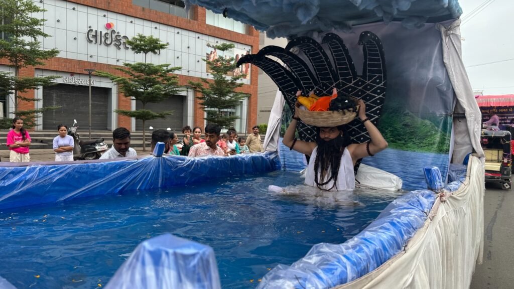 ફ્લોટ્સમાં કૃષ્ણ ભગવાન તથા વિવિધ ઝાંખીના દર્શન