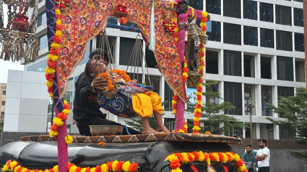 આજે જન્માષ્ટમીનો પાવન અવસર છે રાજકોટ સહિત સમગ્ર ભારત કૃષ્ણમય બની ગયું છે. રાજકોટમાં વિવિધ ફ્લોટ્સ દ્વારા દ્વારકા અને વૃંદાવનની ઝાંખી કરાવતા દ્રશ્યો જોવા મળી રહ્યા છે. રાજકોટના રાજમાર્ગો કાનુડાના રંગે રંગાયા છે. જન્માષ્ટમીના અવસરે રાજકોટમાં છેલ્લા 39 વર્ષોથી શોભાયાત્રાનું આયોજન વિશ્વ હિન્દુ પરિષદ દ્વારા કરવામાં આવે છે ત્યારે આજે સતત 40માં વર્ષે પણ કરવામાં આવ્યું હતું જેમાં ઓપરેશન સિંદૂરની થીમ પર મુખ્ય રથ જોવા મળ્યો હતો. આ શોભાયાત્રામાં મોટી સંખ્યામાં લોકો જોડાયા હતા. રાજકોટના રાજમાર્ગો ઉપર 22 કિલોમીટરની શોભાયાત્રાનું ઠેર ઠેર સ્વાગત પણ કરવામાં આવ્યું હતું.