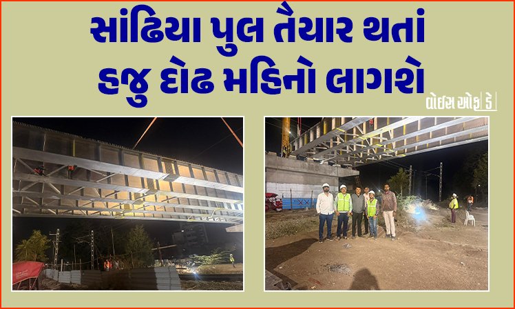 રાજકોટના જામનગર રોડ ઉપર આવેલો ઐતિહાસિક સાંઢિયા બ્રિજને તોડી તેના સ્થાને નવો ફોર-લેન બ્રિજ બનાવવાનું કામ સવા વર્ષથી ચાલી રહ્યું છે ત્યારે હવે તેની કામગીરી અંતિમ તબક્કામાં પહોંચી ગઈ છે આમ છતાં નવો બ્રિજ તૈયાર થવામાં દોઢ મહિનાનો લાગી જાય તેવી શક્યતા ઈજનેરી સૂત્રોએ વ્યક્ત કરી હતી. આ બ્રિજ નીચેથી રેલવે ટ્રેક પસાર થઈ રહ્યો હોવાને કારણે ટ્રેક ઉપર કામ શરૂ કરતાં પહેલાં રેલવેની મંજૂરી લેવી જરૂરી હોવાથી ઘણા લાંબા સમય બાદ આ મંજૂરી મળતાં જ મહાપાલિકાએ ટ્રેક ઉપરનો ભાગ કે જ્યાં બ્રિજ બનાવવો છે ત્યાં તાત્કાલિક સ્ટીલના સાત ગર્ડર મૂકી દીધા હતા. દાવા પ્રમાણે બ્રિજનું કામ 90% પૂર્ણ થઈ ગયું છે.