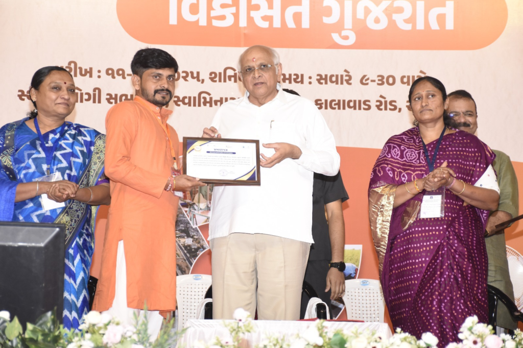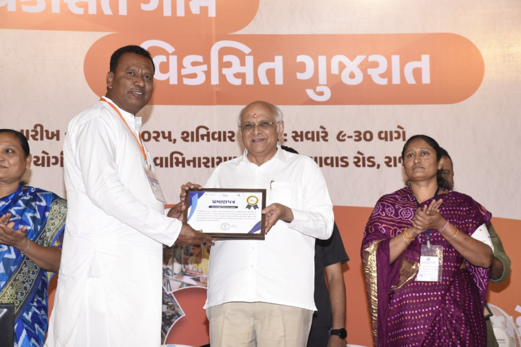 ગ્રામવિકાસ વિભાગ દ્વારા ‘સ્વચ્છ ભારત મિશન-ગ્રામીણ’ અંતર્ગત સ્વચ્છતાને વ્યાપક પ્રોત્સાહન આપવામાં આવી રહ્યું છે. જે અંતર્ગત શ્રેષ્ઠ કામગીરી કરનારી સંસ્થાઓને બિરદાવવામાં આવી રહ્યા છે. ભાવનગરના ઉમરાળા ગામમાં સામુહિક શૌચાલયમાં શ્રેષ્ઠ કામગીરી કરવામાં આવી છે. સરપંચ ધર્મેન્દ્રભાઈ હેજમ દ્વારા સામુહિક શૌચાલયમાં ઓટોમેટિક સેન્સરનો પ્રયોગ કરવામાં આવ્યો છે. જેનાથી ઉપયોગકર્તા શૌચાલયનો ઉપયોગ કરે તે પહેલાં અને પછી આપમેળે જ પાણી ફ્લશ થાય છે અને સ્વચ્છતા જળવાય છે. આ ઉત્તમ કામગીરી બદલ સરપંચનું આજે મુખ્યમંત્રીના હસ્તે સન્માન કરવામાં આવ્યું હતું.