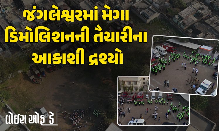 રાજકોટના જંગલેશ્વરમાં મેગા ડિમોલિશનની તૈયારીના જુઓ આકાશી દ્રશ્યો: ભારે હૈયે ઘર છોડવા લોકો મજબૂર, પોલીસનાં ધાડેધાડાં ઊતર્યાં