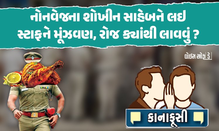 રાજકોટ જિલ્લાના પોલીસ તંત્રમાં એક અધિકારી એવા કે મળેતો જેમને બન્ને ટાઈમ નોનવેજ જોઈએ. હા, નોનવેજ જમનારા અનેક કર્મચારીઓ, અધિકારીઓ કે સામાન્ય વ્યક્તિઓ હોય ખરા પણ બન્ને ટાઈમ આપો તો બન્ને સમય માત્ર નોનવેજ જ ચાલે એવા આ સાઈડ ઓછા હોય. કારણ કે, બન્ને સમય નોનવેજ બનાવવું અને પચાવવું પણ એક પ્રકારની ડ્યુટી (કસરત) જ થઈ પડે. રાજકોટ જિલ્લાના નવા નવેલા અધિકારીને નોનવેજ એટલે ઘી કેળા જેવું છે. સાહેબને તો સ્ટાફ ના પણ કેમ કહી શકે. એવા પણ હશે ટીમમાં કે જે લેતા નહીં હોય પરંતુ સાહેબ લે અને સાહેબ છે એટલે કરવું પણ શું ? સાહેબને ત્યાં સુધી તો બરોબર પણ સાહેબ માટે લાવીને આપવું પડે એ નહીં ગમનારાઓને કાઠું પડે. સાહેબની ડિમાન્ડ વેજની નહીં નોનવેજની વધુ રહે. વેજ માંગે તો જે મેનું જોઈએ, જેવું માંગે એવું લાવી આપે કારણ કે, વેજની હોટલો પણ એટલી હોય અને સાહેબના હોટલનું ભોજન ન ભાવે તો સ્ટાફ ઘરેથી પણ લાવી શકે. જ્યારે નોનવેજ તો સ્ટાફ માટે પણ રોજરાજે કોને કહેવું, ક્યાંથી કાઢવું ? જેવી ઉપાધિ બની જાય. સાહેબને બંગલો કે રહેણાંક પણ મોટા સાહેબો જેવું જોઈએ. સ્ટાફ કે અન્ય અધિકારીઓ અંદરો અંદર એવી કાનાફૂસી કરતા રહે કે હજુ તો નવા છે ને આટલી ડિમાન્ડ કે શોખ છે, જૂના થશે ને જ્યાં જશે ત્યાંના સ્ટાફનું શું થશે ? જે રીતે વાતો થાય છે એ સત્ય હોય તો ખરું કહેવાય હો.