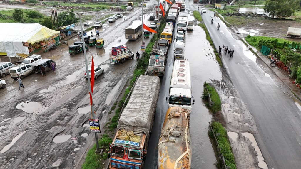 રાજકોટમાં અત્યારે શેરી હોય કે મોટા રસ્તા હોય ક્યાંય ખાડા પડ્યા ન હોય તેવું દેખાશે નહીં. અત્યારે સૌથી વધુ હાલત ખરાબ હોય તો તે માધાપર ચોકડીની છે. અહીં આખો દિવસ નાના-મોટા હજારો વાહન અવર-જવર કરતા રહે છે આમ છતાં અહીં ખાડા બૂરવામાં તંત્ર હદ બહારનું વામણું પૂરવાર થઈ રહ્યું હોય હવે ઉગ્ર આંદોલનની તૈયારી કરવામાં આવી છે.