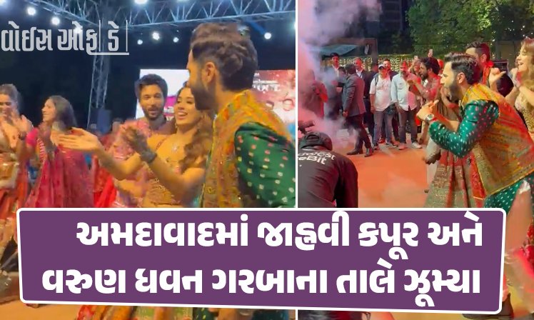 રાસ ગરબાની રમઝટ : વરુણ ધવન-જાહ્નવી કપૂર અમદાવાદમાં ગરબે ઘૂમ્યા, ટ્રેડિશનલ લુકના PHOTOS થયા વાયરલ