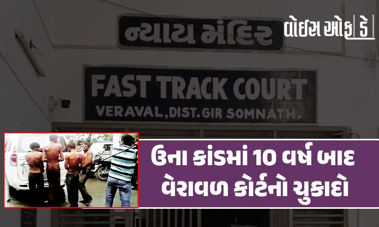 એક દાયકા પહેલા માત્ર ગુજરાતમાં જ નહીં પરંતુ સમગ્ર દેશમાં ગાજેલા ઉના કાંડમાં વેરાવળની કોર્ટે 5ને દોષિત ઠેરવ્યા છે જ્યારે પુરાવાના અભાવે 37 આરોપીઓને નિર્દોષ ગણીને છોડવા આદેશ આપ્યો છે. આ કેસમાં દોષિતોને મંગળવાર (17 માર્ચ)ના રોજ સજા સંભળાવવામાં આવી છે. વેરાવળ સેશન્સ કોર્ટે આ કેસના મુખ્ય 5 આરોપી રમેશ જાદવ, રાકેશ જોશી, પ્રમોદ ગૌસ્વામી, નાગજી ડાયા અને બળવંત ગૌસ્વામીને પૂર્વનિયોજિત હુમલો અને અત્યાચાર ગુજારવા બદલ દોષિત ઠેરવ્યા છે, ત્યારે વેરાવળ સેશન્સ જજ પંડ્યા દ્વારા ચુકાદો આપવામાં આવ્યો છે.