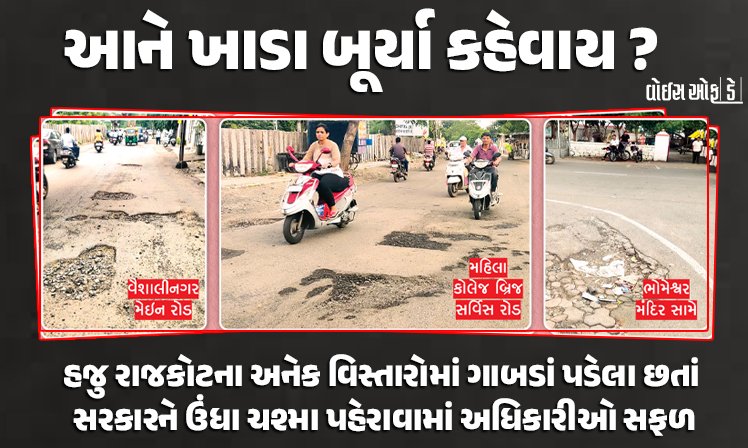અમે રાજકોટના તમામ ખાડા બૂરી દીધા છે : સરકારને ઉઠાં ભણાવતી મનપા, હજુ અનેક વિસ્તારોમાં ગાબડાં છતાં સરકારને ઉંધા ચશ્મા પહેરાવ્યા